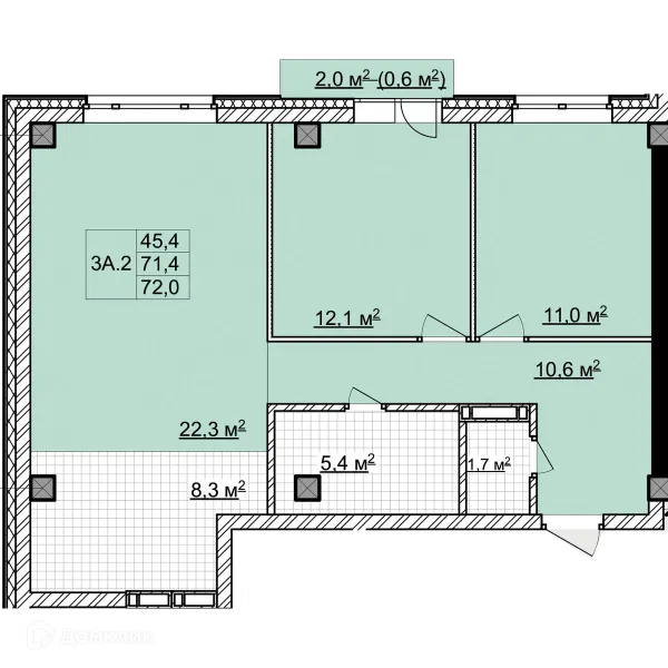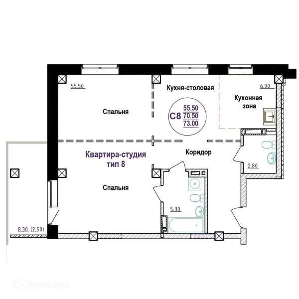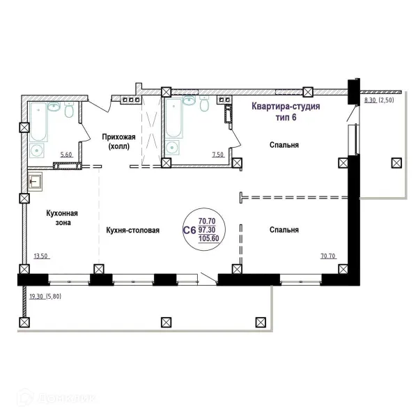 2 комн. квартира в Томске в ипотеку от 113 610 руб/месяц