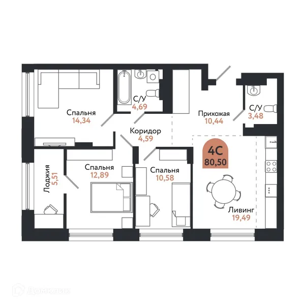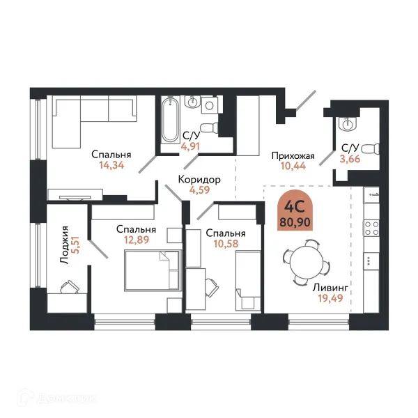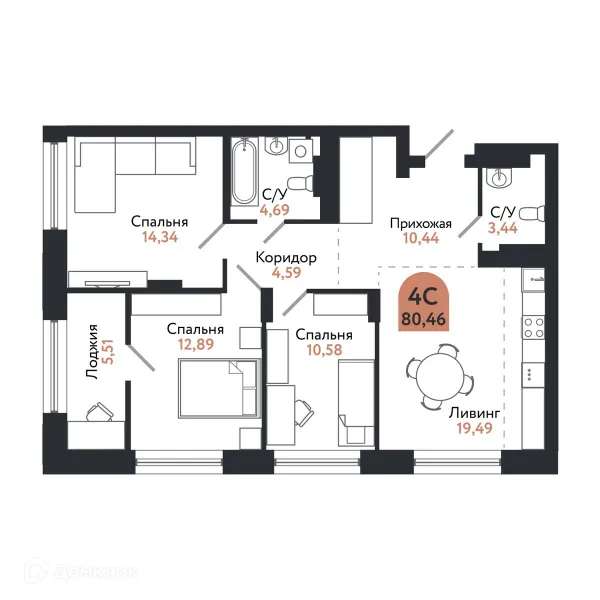 4 комн. квартира в Томске в ипотеку от 80 392 руб/месяц