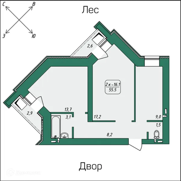 2 комн. квартира в Томске в ипотеку от 51 950 руб/месяц