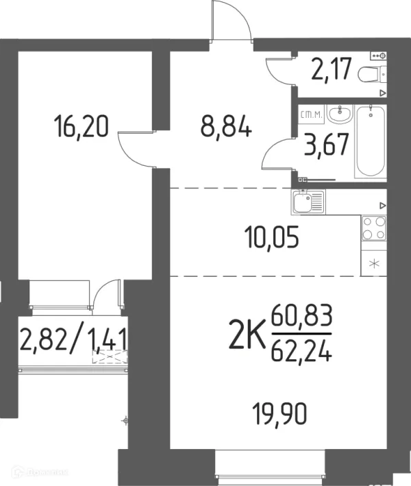 1 комн. квартира в Томске в ипотеку от 60 045 руб/месяц