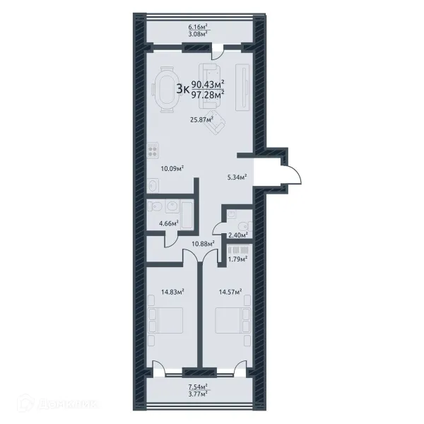 3 комн. квартира в Томске в ипотеку от 98 071 руб/месяц