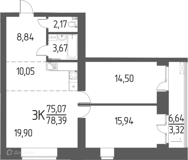 3 комн. квартира в Томске в ипотеку от 77 801 руб/месяц