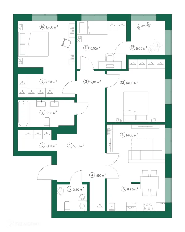 4 комн. квартира в Томске в ипотеку от 112 166 руб/месяц
