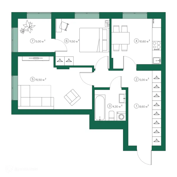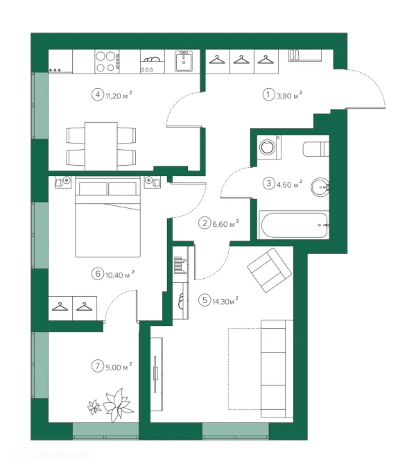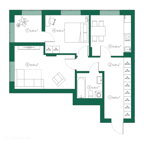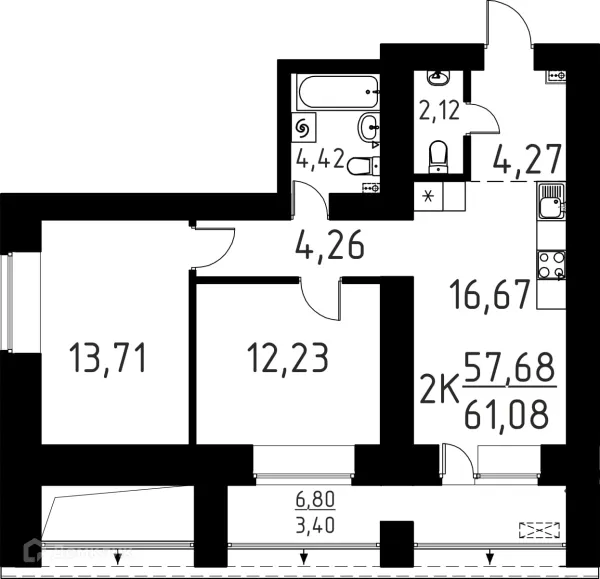 2 комн. квартира в Томске в ипотеку от 52 780 руб/месяц
