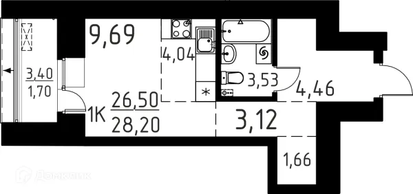 1 комн. квартира в Томске в ипотеку от 29 241 руб/месяц