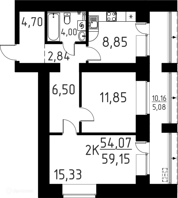 2 комн. квартира в Томске в ипотеку от 65 479 руб/месяц