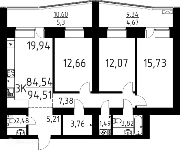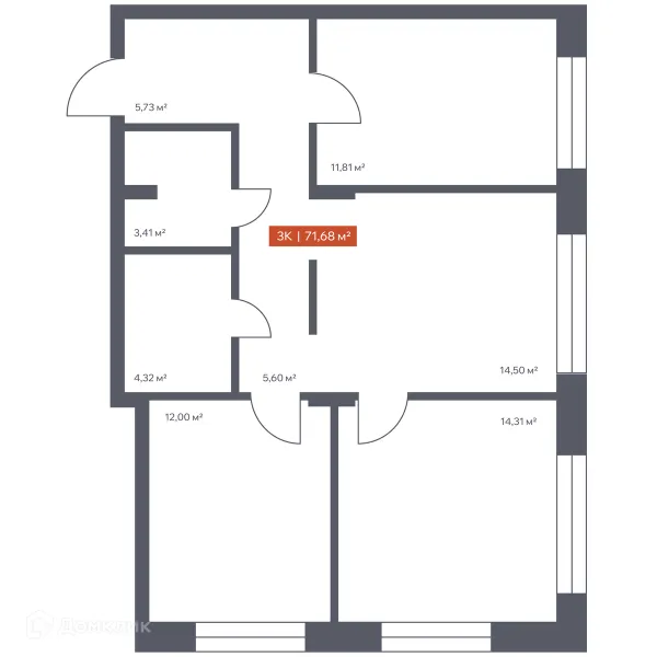 3 комн. квартира в Томске в ипотеку от 114 335 руб/месяц