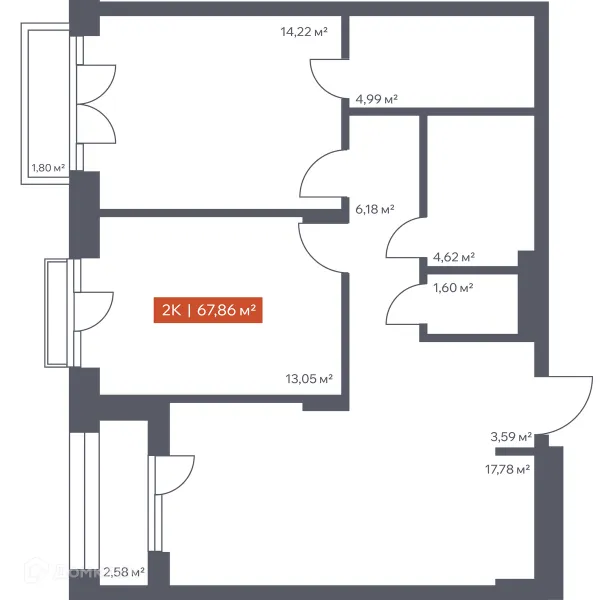 2 комн. квартира в Томске в ипотеку от 83 869 руб/месяц