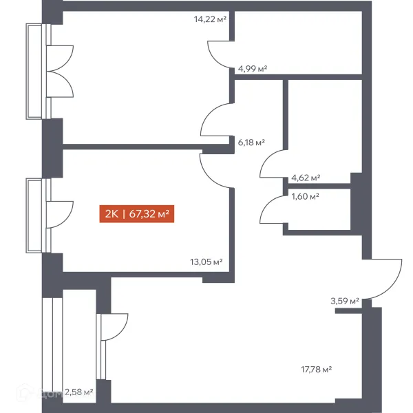 2 комн. квартира в Томске в ипотеку от 76 893 руб/месяц