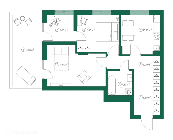 2 комн. квартира в Томске в ипотеку от 54 543 руб/месяц