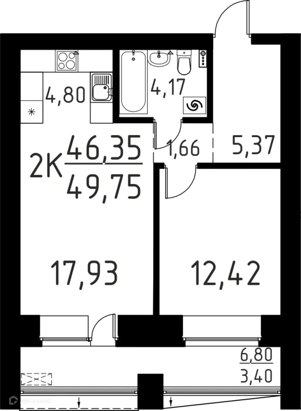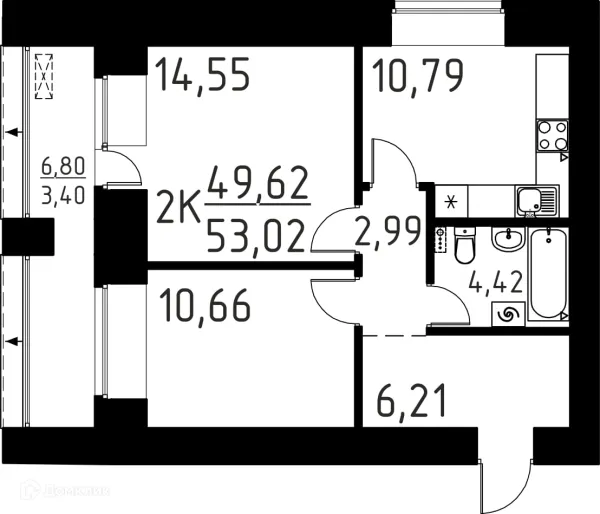 2 комн. квартира в Томске в ипотеку от 46 579 руб/месяц