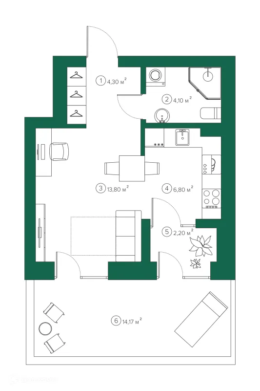 1 комн. квартира в Томске в ипотеку от 54 693 руб/месяц