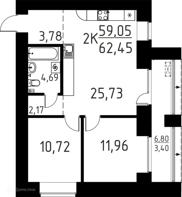 2 комн. квартира в Томске в ипотеку от 48 378 руб/месяц
