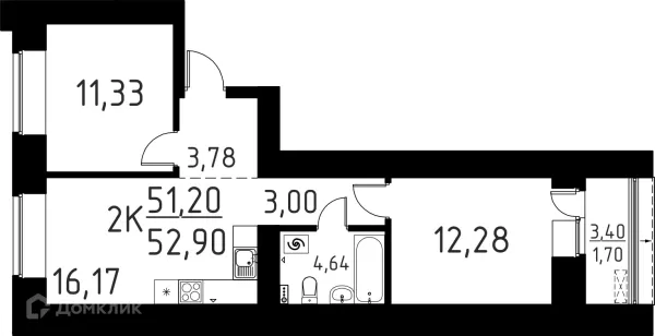 2 комн. квартира в Томске в ипотеку от 39 958 руб/месяц
